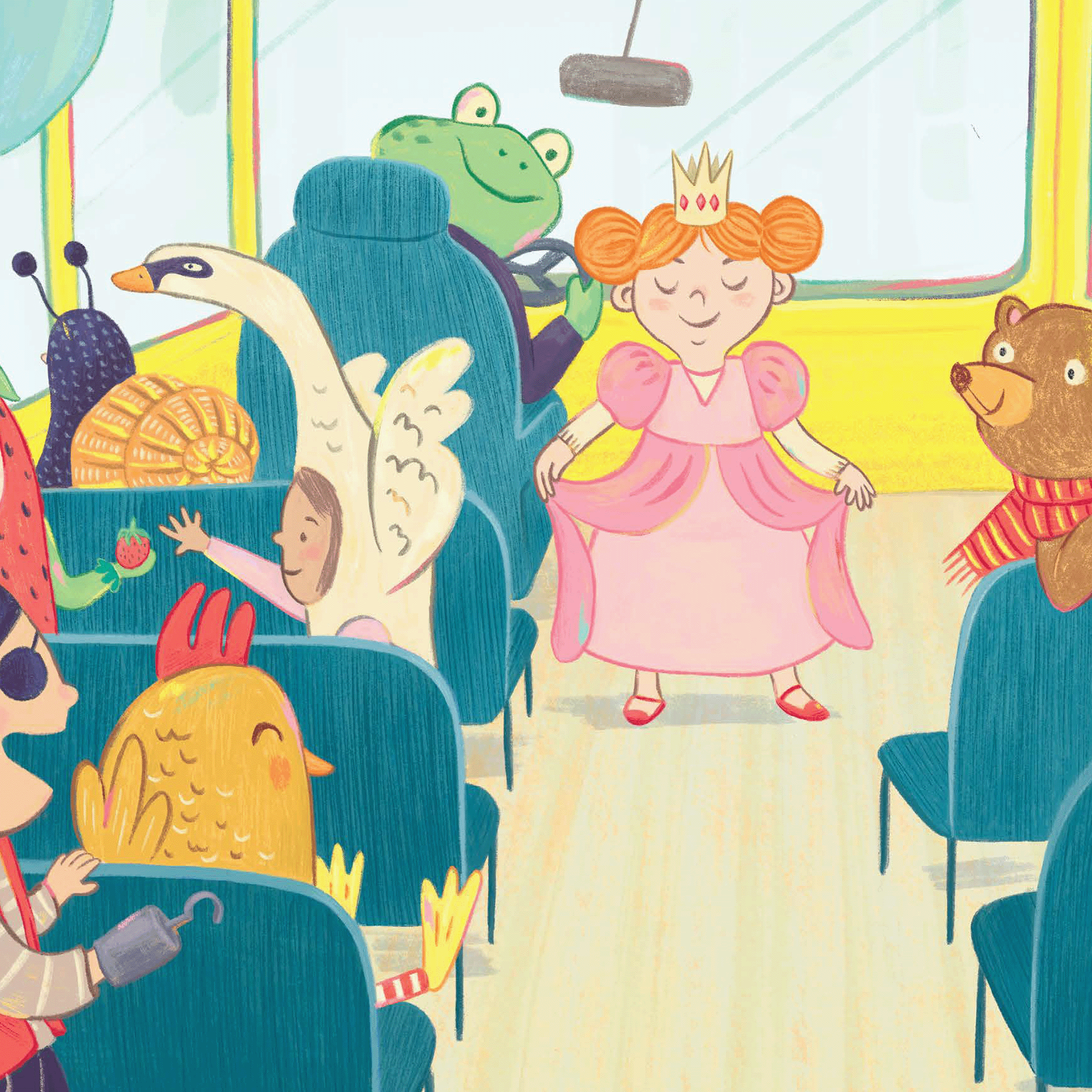 ቀበሮ፣ ሌጻንና ዶሮ ወደ አውቶቡስ ውስጥ ይሣፈራሉ። እነርሡም ብቻቸውን አልነበሩም። ቁጥራቸው እየጨመረ የመጣ እንስሳትና በቀለማት ያሸበረቁ ገጸ ባህሪያት ይቀላቀላሉ። ግን እነዚህ እንስሳት ናቸው? በእውነቱ አውቶቡሱ ውስጥ የሚገባው ማነው? በደስታና በበዓል መንፈስ የተሞላ የፑሪም ታሪክ።